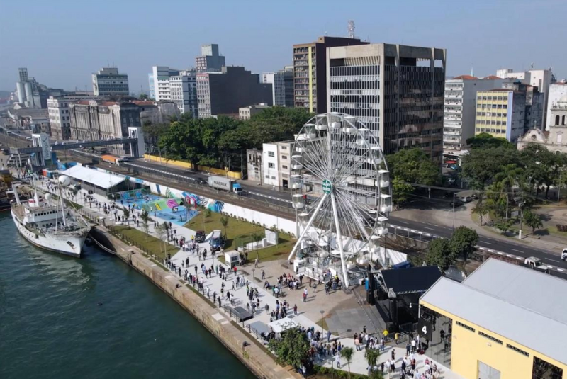 Descrição: Descubra o Parque Valongo, um espaço revitalizado com quadra de beach tennis, playground, gastronomia, roda gigante e píer para embarcações. Venha se encantar com eventos vibrantes, atividades recreativas e o charme histórico de Santos.